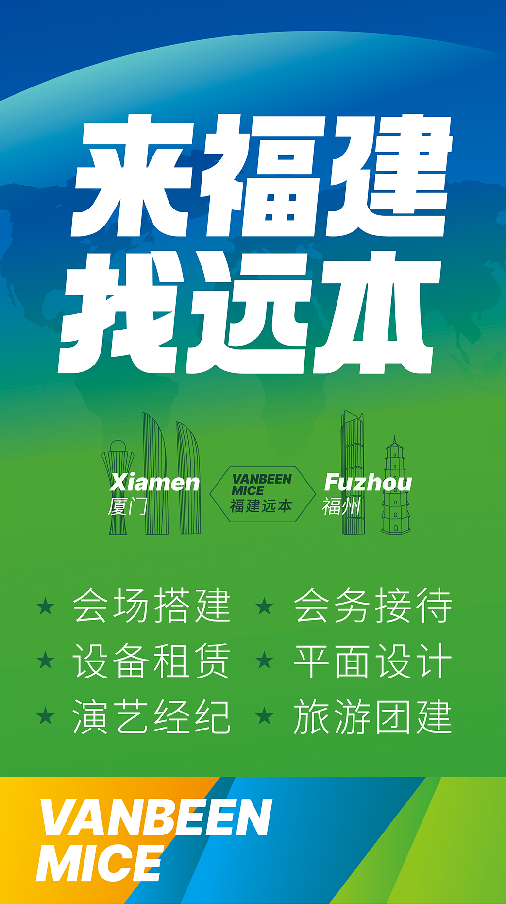 廈門遠(yuǎn)本成立于2013年,是一家集策劃設(shè)計(jì)、落地搭建以及會議接待等全案服務(wù)的DMC公司。公司擁有LED屏幕、燈光音響、木作工廠等專業(yè)舞美設(shè)備,擁有一批專業(yè)穩(wěn)定的策劃設(shè)計(jì)和會務(wù)接待團(tuán)隊(duì),能夠快速、精準(zhǔn)地為客戶提供優(yōu)質(zhì)的策劃、設(shè)計(jì)、搭建、接待等服務(wù)。公司已服務(wù)過華為、阿里、麥當(dāng)勞、中國移動、??松梨?、興業(yè)銀行、招商銀行、華潤三九、齊魯制藥、萬邦制藥等國內(nèi)外知名企業(yè),并成功入選中國國旅、中旅、康輝國旅、錦江國旅、中智商展、墨馬傳媒等國內(nèi)知名PCO公司供應(yīng)商庫。